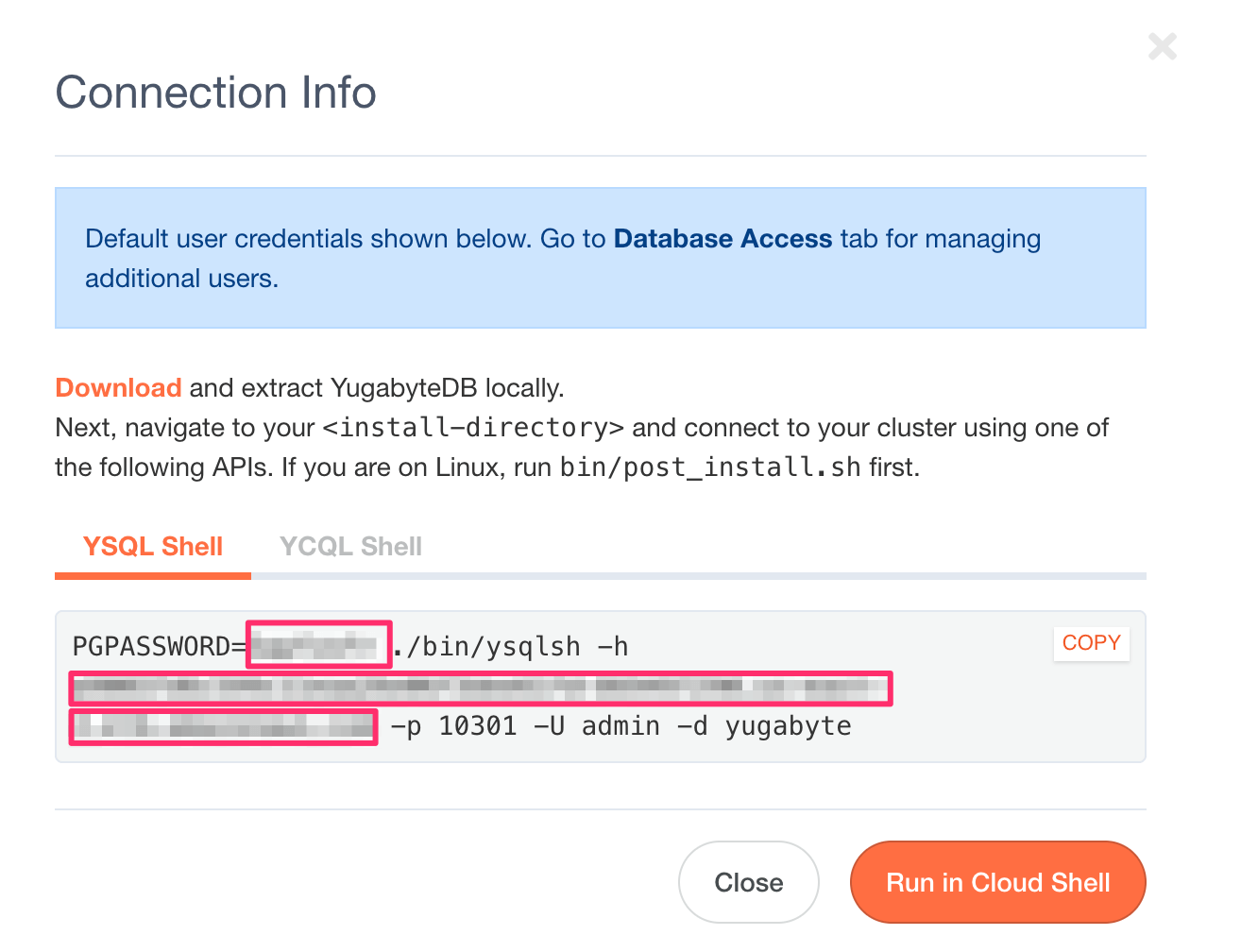 Now you can get the connection info from the following screen: