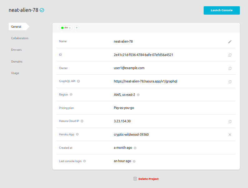 tab lets you use the Pro features that Hasura Cloud has set up for you.Click the gear icon to manage your project