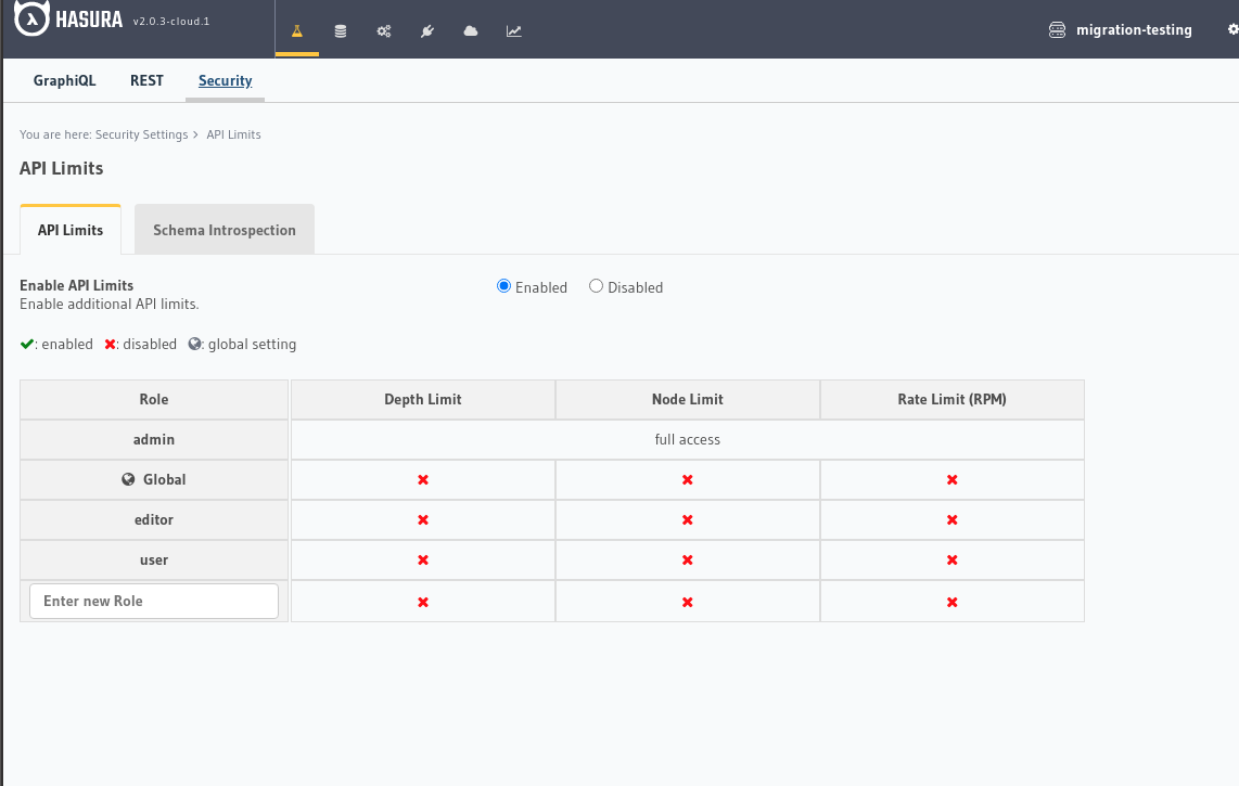 All API security related features can be found under the Security tab in the API explorer page of Hasura console.