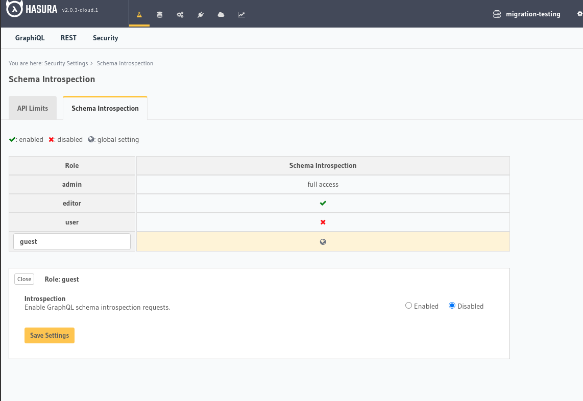 Disabling GraphQL introspection for a role¶