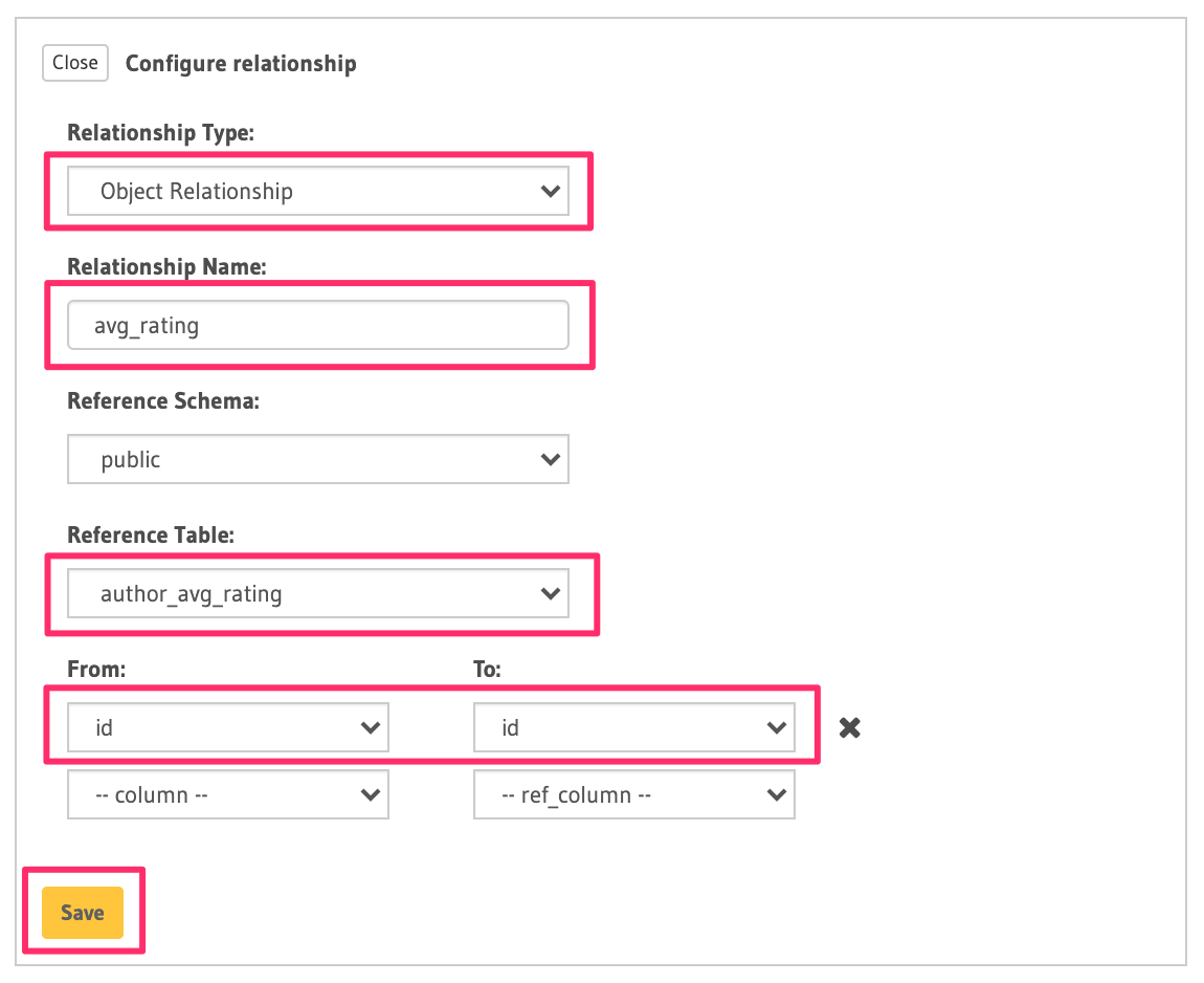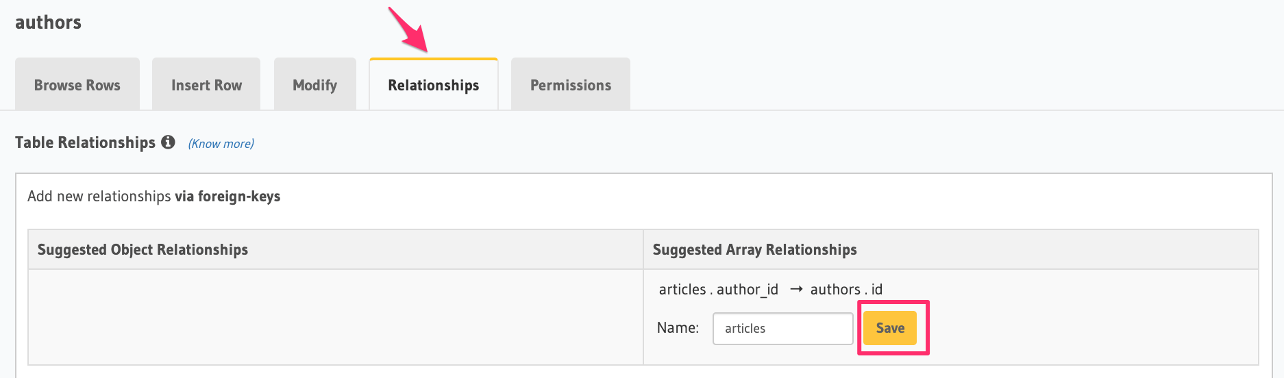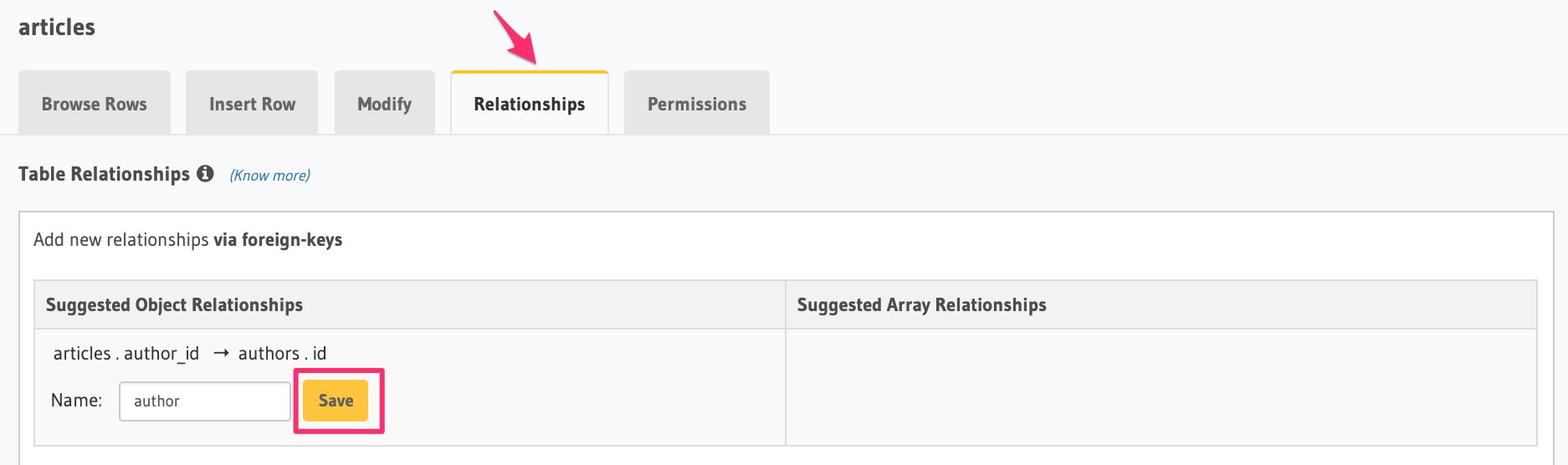 The console infers potential relationships using the foreign-key created above and recommends these in the