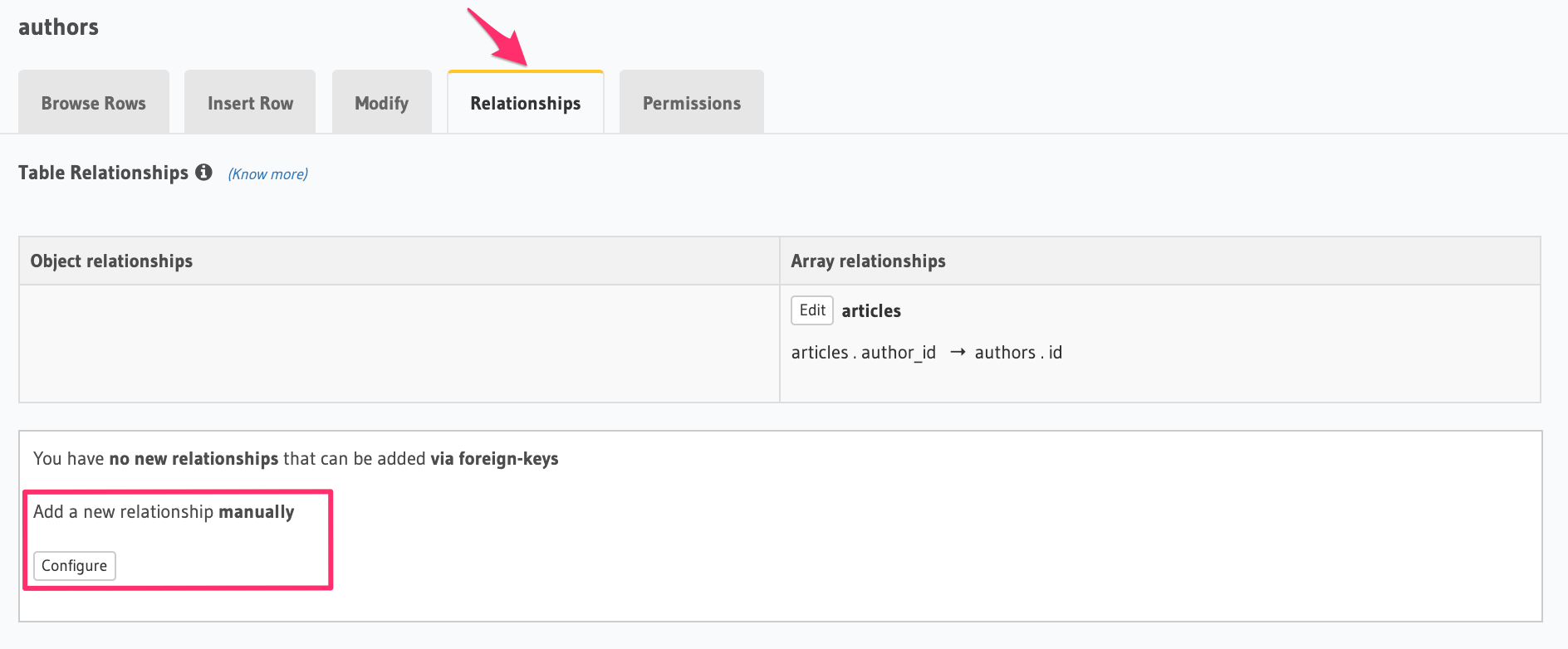 Typically, relationships are defined using foreign-key constraints. But in some cases, it might not be possible to use foreign-key constraints to create the relation. For example, while trying to create a relationship involving a view as foreign-keys can’t be created on views.