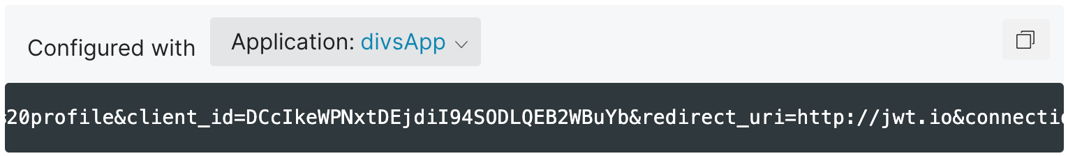 to login to your Auth0 domain.Select your application and copy the generated URL, like so: